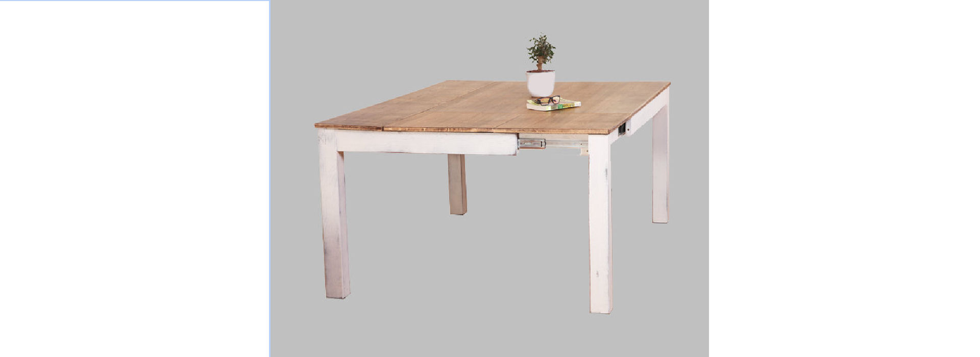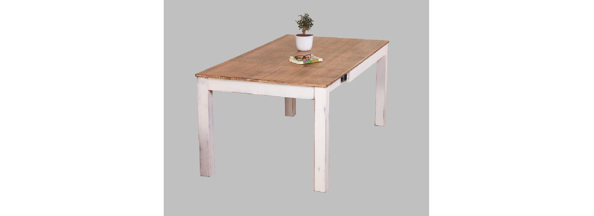 A rustic-looking table that combines the rough appearance of the wooden surface with a clean look of the white legs. The Provence table combines an innovative design aspect with the engineering aspect that enables easy and safe opening of the table along both sides.